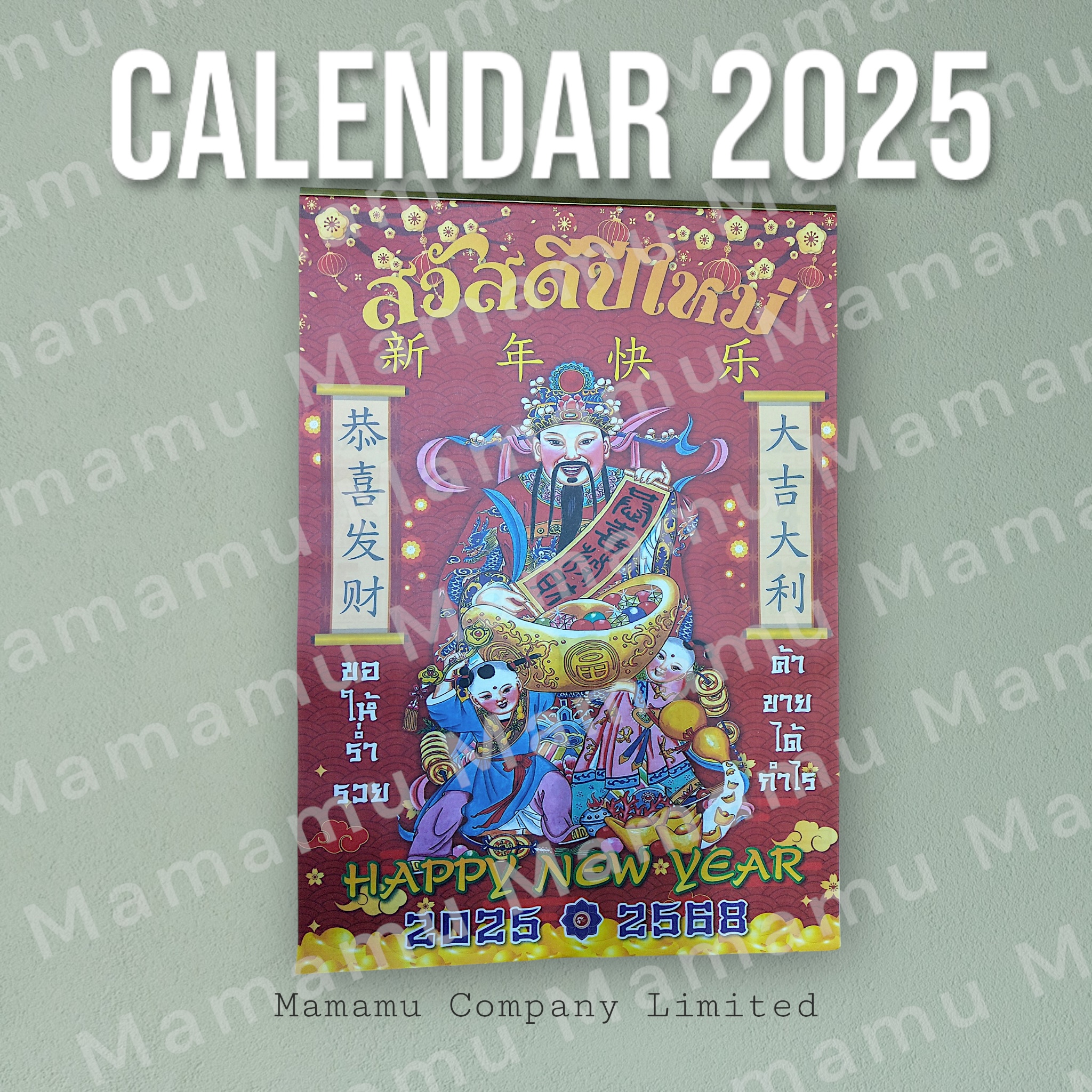 ปฏิทินแขวน ปกเทพเจ้าไฉ่ซิ่งเอี๊ยะ ท่านเป็นเทพเจ้าแห่งความร่ำรวย เรียกทรัพย์ ตามความเชื่อของคนไทยเชื้อสายจีน ราคา 35 บาท คลิกสั่งซื้อที่นี่