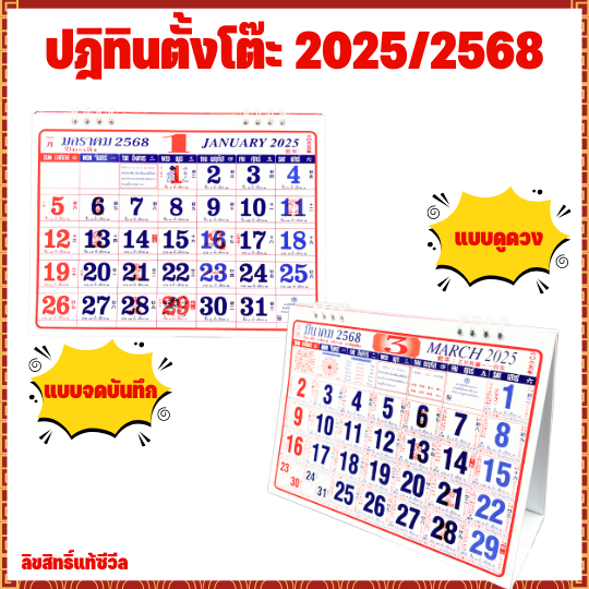 ปฏิทินตั้งโต๊ะ สไตล์จีน ลิขสิทธิ์ซีวีล ปฏิทินตั้งโต๊ะดูดวง จดบันทึก ปีมะเส็ง ปี 2568/2025 พร้อมตารางฮวงจุ้ย 8 เหลี่ยม บอกวันพระไทย ฤกษ์ดี ฤกษ์ธงไชย ราคา 59 บาท  คลิกสั่งซื้อที่นี่