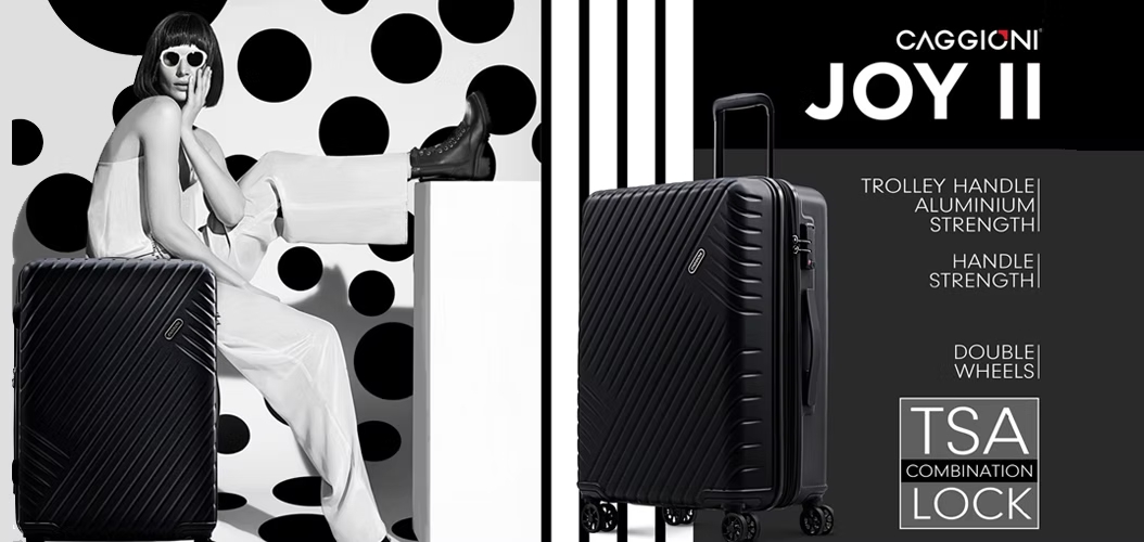กระเป๋าเดินทาง Caggioni รุ่นที่ขายดีที่สุดมีชื่อว่า “รุ่น Joy ii” ในขนาด 20 นิ้ว และ 24 นิ้ว (พิจารณาจากคำค้นหาและยอดขายบนทุกแพลทฟอร์ม) ซึ่งเป็นรุ่นเดียวกับที่แบรนด์ต่างๆ สั่งผลิตเป็นของแจกลูกค้า จุดเด่นของรุ่นนี้คือมีความแข็งแรง และมีเทคโนโลยีล็อคซิปที่ใช้งานสะดวก ล็อคแน่นหนา พร้อมกับคันลากที่ลื่นไหล ใช้งานง่าย เป็นใครได้จับก็ต้องติดใจค่ะ