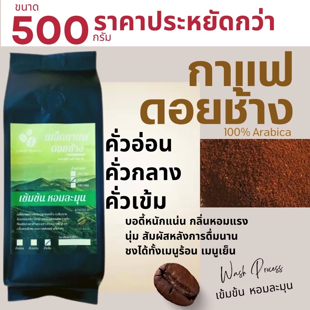 เมล็ดกาแฟสดจากดอยช้าง เป็นเมล็ดกาแฟอาราบิก้า 100% ปริมาณคาเฟอีนไม่สูง ให้ความหอม นุ่ม และเข้มข้นในรสกาแฟ บรรจุถุง 500 กรัม เลือกระดับคั่วเข้ม คั่วกลาง คั่วอ่อนได้เช่นกัน และเลือกจัดส่งแบบบด หรือไม่บด ในร้านนี้ยังมีเมล็ดกาแฟจากเชียงราย ถ้าใครอยากซื้อเมล็ดกาแฟหลายๆ แบบในออเดอร์เดียว ร้านนี้รับจบ!