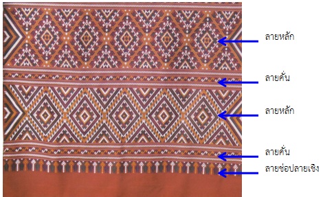 ลวดลายผ้าไหมแพรวาประกอบด้วย 5 ส่วนหลัก ๆ คือการทอลายหลัก และมีลายคั่น ทั้งผ้าที่ทอเป็นผ้าคลุมไหล่ สไบ รวมไปถึงผ้าซิ่น ก็จะมีส่วนต่างๆ ของลายดังนี้