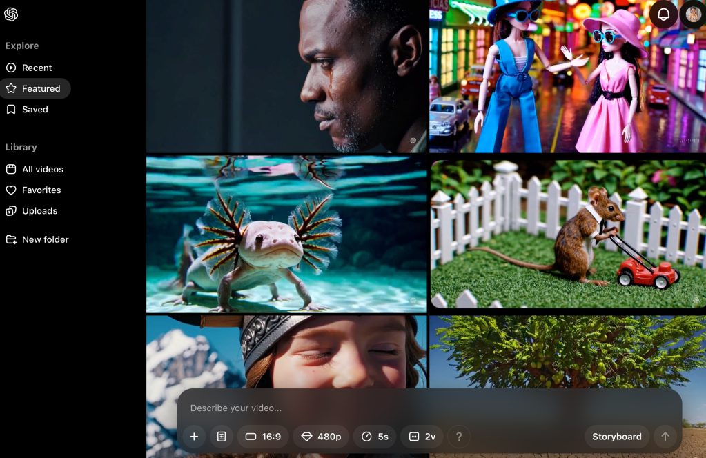 SORA AI เปลี่ยนคำสั่งตัวอักษร เป็นคลิปวิดีโอสั้นๆ ใช้งานได้ยาวสุด 1 นาที เลือกออกแบบได้ตามการใช้งาน โดยคุณจะอัปโหลดภาพ หรือคลิป เพื่อให้ SORA ช่วยออกแบบและตกแต่งก็ได้