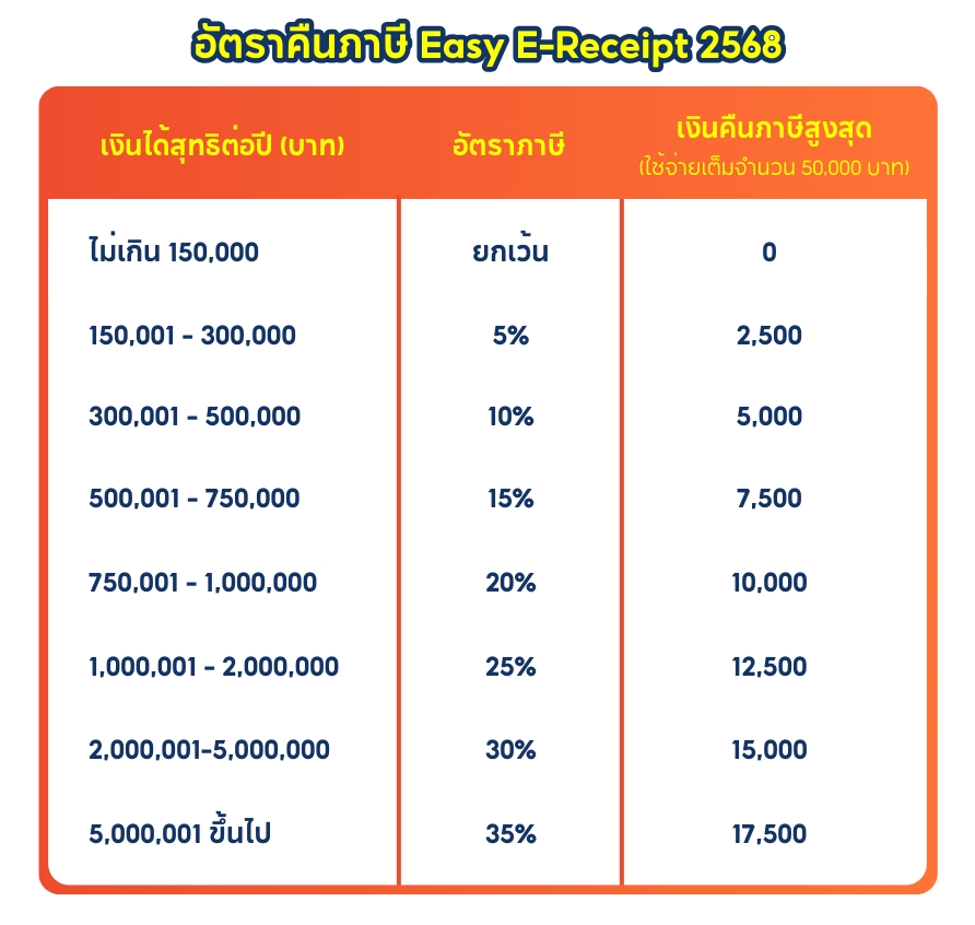 - ช้อปดีมีคืน 2568 เปลี่ยนชื่อเป็น Easy E-Receipt ลดหย่อนสูงสุด 50,000 บาท