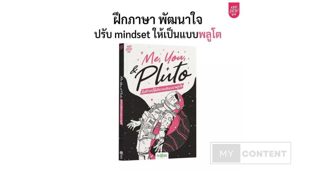 หนังสือMe, You, & Pluto หนังสือภาษาอังกฤษในหมวดพัฒนาตัวเองจากสำนักพิมพ์ OpenDurian ผู้เขียน KruDew! ติวเตอร์ภาษาอังกฤษที่ทุ่มเทเพื่อการสอนภาษาอังกฤษกว่า 12 ปี หนังสือเล่มนี้ได้แชร์ความรู้สึกฮีลใจ ที่ได้จากการสำรวจตัวเองของ KruDew ให้สามารถรักตัวเองแบบไม่ต้องพึ่งใคร เหมือนกับ “พลูโต”