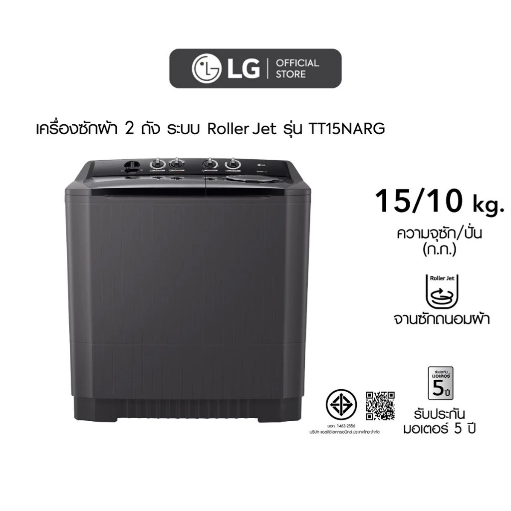 อันดับ 1 เครื่องซักผ้า LG 2 ถัง ขนาด 15 กิโล รุ่น TT15NARG ระบบ Roller Jet ถังปั่นแห้งทำงานรวดเร็ว ผ้าแห้งไว ลดเวลาตาก ระบบซักพลังสูง ขจัดคราบฝังลึกได้ดี ประหยัดน้ำและไฟ ตอบโจทย์การใช้งานระยะยาว