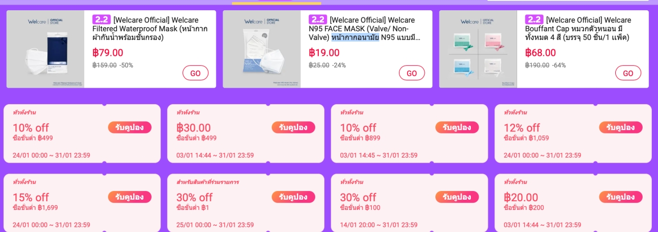 สำหรับผู้ที่สนใจหน้ากาก Welcare N95 สามารถหาซื้อได้ที่ร้านค้าออนไลน์ เช่น Lazada และ Shopee โดยราคาจะอยู่ระหว่าง 500 – 600 บาทต่อกล่อง (20 ชิ้น) สั่งซื้อได้ที่นี่ พิกัด ร้าน Welcare Official Store : LAZADA