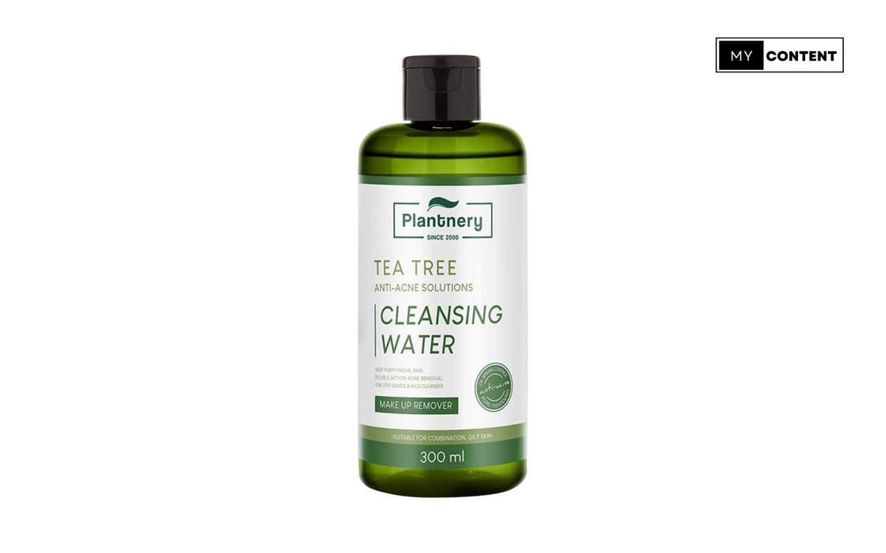 - Plantnery Tea Tree Cleansing Water: ใช้สำลีชุบคลีนซิ่งวอเตอร์ เช็ดทำความสะอาดเครื่องสำอางและสิ่งสกปรกบนผิวหน้าอย่างอ่อนโยน เหมาะสำหรับผู้ที่แต่งหน้าเบา ๆ หรือใช้ครีมกันแดด