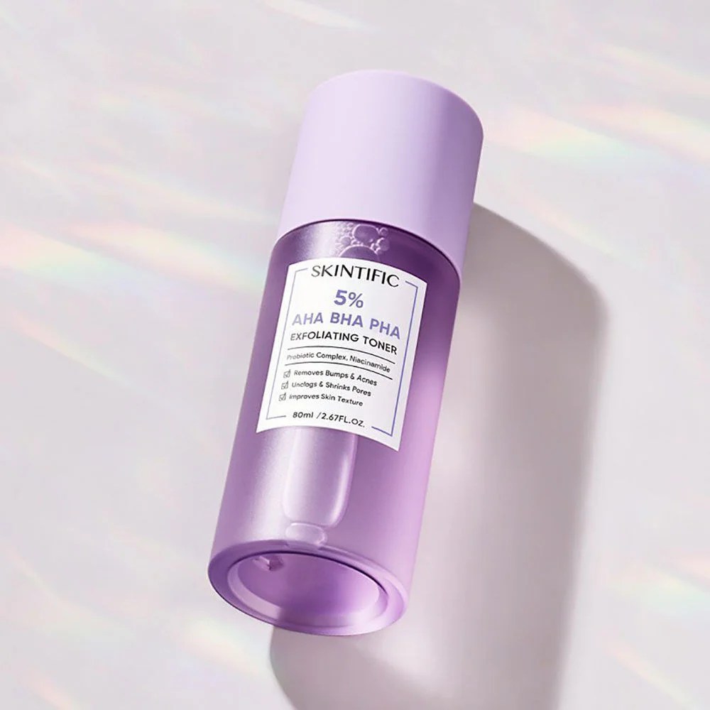โทนเนอร์ที่มีส่วนผสมของ AHA, BHA, และ PHA ช่วยผลัดเซลล์ผิว ลดสิวอุดตัน และปรับสภาพผิวให้เรียบเนียน เหมาะสำหรับผิวเป็นสิว