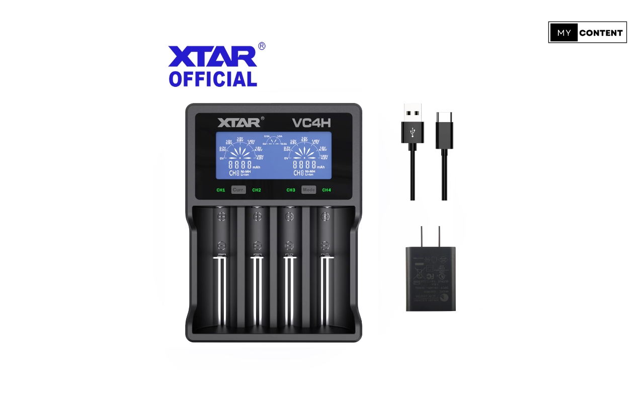 Xtar VC4 เป็นที่ชาร์จอัจฉริยะที่รองรับทั้งถ่านชาร์จ Ni-MH และลิเธียมไอออน มีหน้าจอ LCD แสดงสถานะการชาร์จแบบเรียลไทม์ สามารถชาร์จได้ 4 ก้อนพร้อมกัน