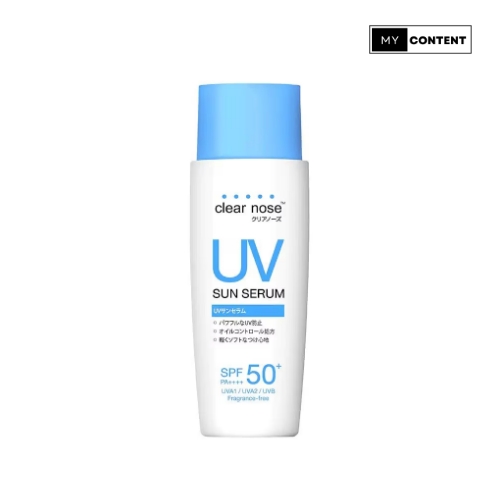 Clear Nose UV Sun Serum SPF50+ PA++++ แบบซอง มีขนาด 7 มิลลิลิตร เป็นเซรั่มสูตรน้ำ บางเบา สบายผิว ไม่เหนอะหนะ ปกป้องผิวจากรังสี UVA1, UVA2 และ UVB ด้วยค่า SPF50+ PA++++ เหมาะสำหรับทุกสภาพผิว โดยเฉพาะผิวแพ้ง่ายและเป็นสิวง่าย จำหน่ายซองละ 49 บาท มีจำหน่ายที่เซเว่นเกือบทุกสาขา รวมถึงแบบกล่องรวม 6 ซอง จำหน่ายในราคา 245 บาท (สั่งซื้อได้ที่ SHOPEE) ในช่องทางต่างๆ ของ Clear Nose