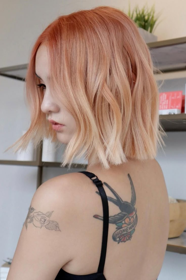สีบลอนด์พีช Peach Blonde โทนส้มสดใส เปลี่ยนลุคให้ดูสนุกสนาน ไม่ว่าจะมีผิวสีอะไร ผมสีบลอนด์พีชก็ทำให้สีผิวดูสว่างขึ้นไปได้อีกหลายเฉด