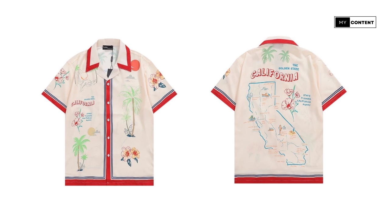 เสื้อฮาวาย ZARA ผู้หญิง สกรีนแผนที่รัฐแคลิเฟอร์เนียไว้ด้านหลัง ตัดสีแดงขอบเสื้อ มีลายต้นมะพร้าวและดอกพู่ระหง และพระอาทิตย์ขึ้นจากทะเล มีไซส์ตั้งแต่ M – XXXL ผ้าฝ้ายชิโนใส่สบาย จัดส่งจากต่างประเทศ ราคาตัวละ 450 บาท เท่านั้น SHOPEE