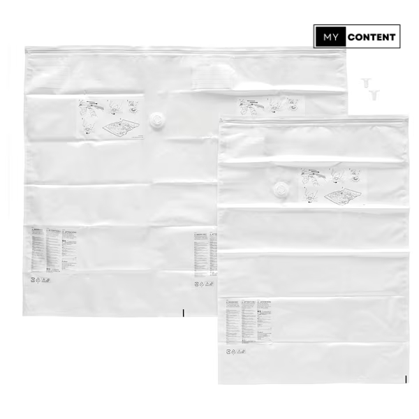 IKEA มีถุงสูญญากาศสำหรับจัดเก็บเสื้อผ้าและของใช้ต่างๆ รุ่นนี้ออกแบบมาให้ทนทานและใช้งานง่าย มีระบบซิปล็อกแน่นหนา คุณภาพดี ทนทาน เหมาะสำหรับการเดินทางและจัดเก็บในบ้าน
