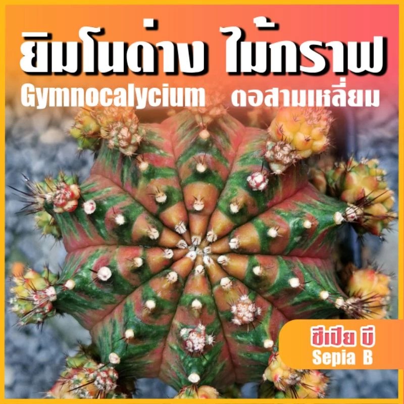 ยิมโนโคลนซีเปียบี (Sepia B) แบบฟอร์มสวยๆ มีจำนวนน้อยในท้องตลาด ไม่ค่อยให้หน่อเท่าไหร่ และมีสีสันที่แตกต่างไปตามแสงแดด ทั้งสีน้ำตาล สีเหลือง สีเขียว สีน้ำตาลอมแดง สีเสมอกันทุกพู ถือเป็นยิมโนโคลนคลาสสิคที่มีผู้นิยมเล่นมาก และราคาไม่ค่อยลง เป็นอีกหนึ่งโคลนที่พัฒนาโดยกระท่อมลุงจรณ์ที่มีคนตามหากันตลอด Phancactus