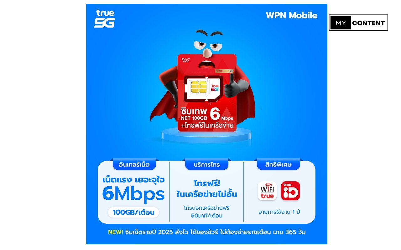 นอกจากนี้การเลือกซื้อ ซิมเน็ตรายปี 2025 จากค่าย True ยังได้ใช้ Wifi จาก @TRUEWIF ฟรี รวมถึงดูหนัง ซีรีส์ 85 ช่อง ใน TrueID ULTIMATE กับบางแพ็คเกจซิม (สั่งซื้อได้ที่นี่)