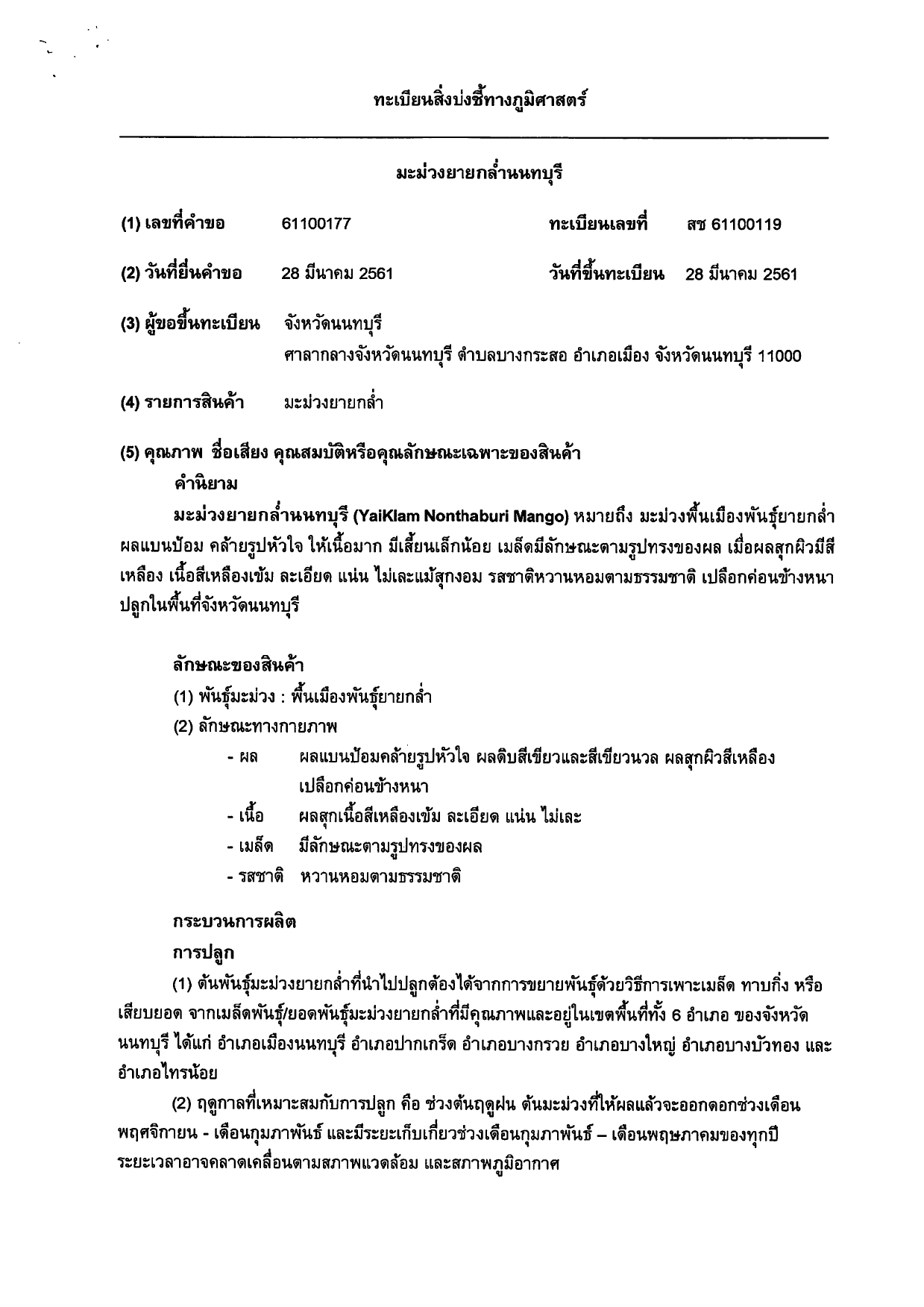 - มะม่วงยายกล่ำ, กรมทรัพย์สินทางปัญญา., https://www.ipthailand.go.th/images/2284/GI61100119.pdf