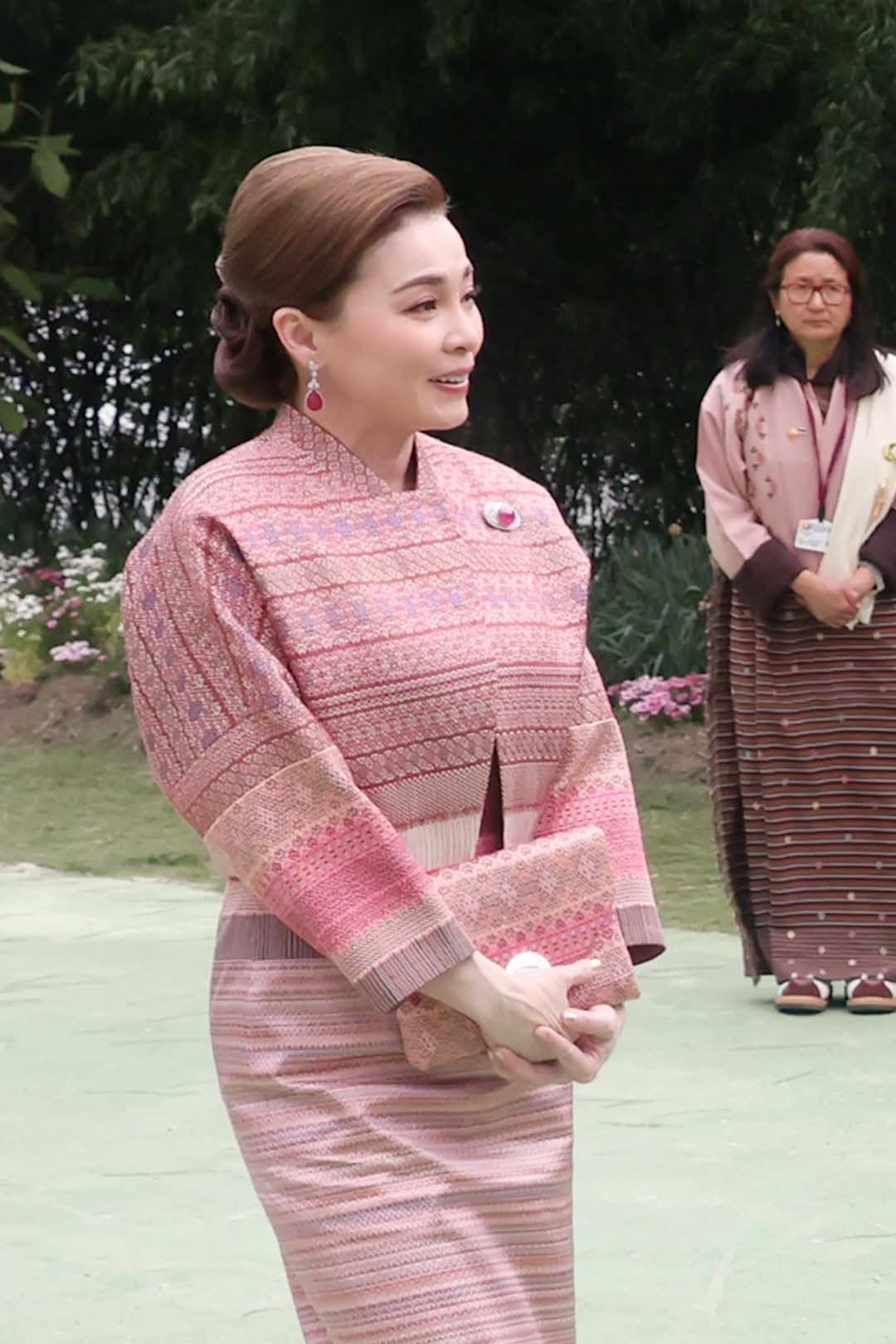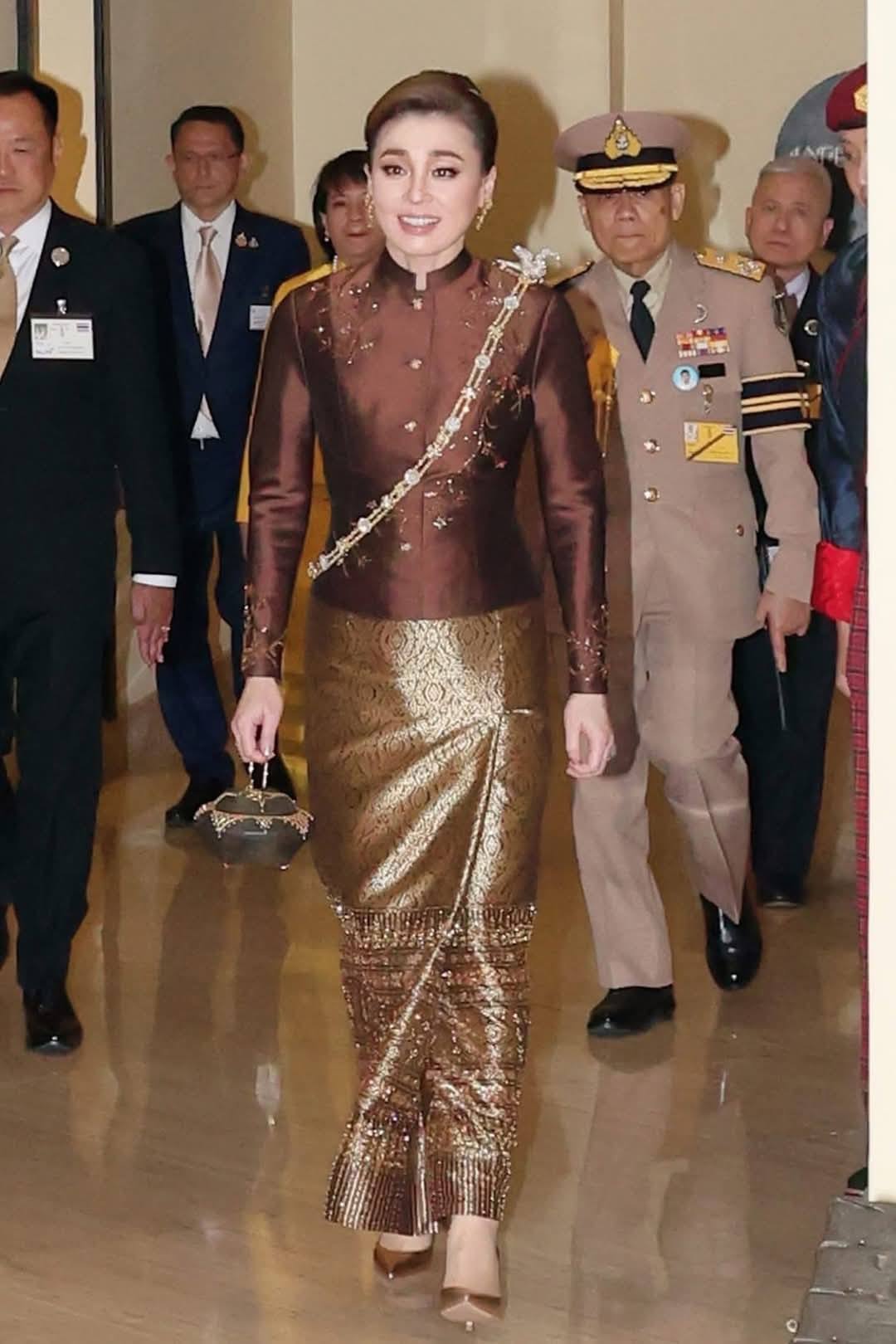 ในการเสด็จครั้งนี้ สมเด็จพระนางเจ้าสุทิดา พัชรสุธาพิมลลักษณ พระบรมราชินี ได้ทรงฉลองพระองค์ผ้าไหมไทย ในชุดไทยประยุกต์ที่งดงามสะกดสายตานานาประเทศ ประกอบด้วยผ้าไหมยกดอก และผ้าไหมแพรวา อันเป็นผ้าไหมขึ้นชื่อของประเทศไทย