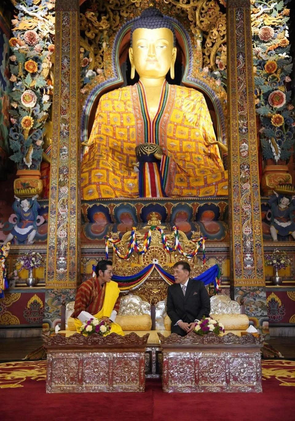 ราชวงศ์ไทยและภูฏานถือว่ามีความสัมพันธ์อันดีต่อกันมาโดยตลอด และครั้งนี้ประเทศภูฏานได้ต้อนรับพระมหากษัตริย์ไทยด้วยการประดับธงทั้งสองชาติ ร่วมกับพระบรมฉายาลักษณ์ของกษัตริย์ทั้งสองประเทศคู่กัน