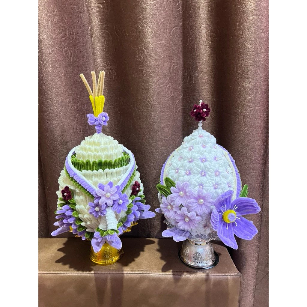 4. พานคู่ดอกไม้ไหว้ครู ลวดกำมะหยี่