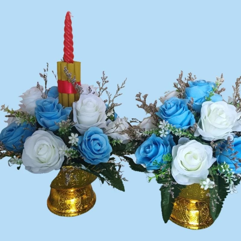 5. พานธูปเทียน + ดอกไม้ ครบชุด