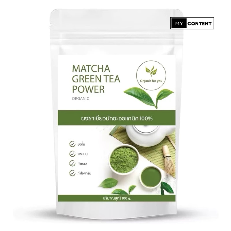 ชาเขียวมัทฉะบริสุทธิ์ 100% ไม่เติมกลิ่น สี หรือสารเคมีใด ๆ เหมาะสำหรับชงดื่ม หรือใช้ในเบเกอรี่