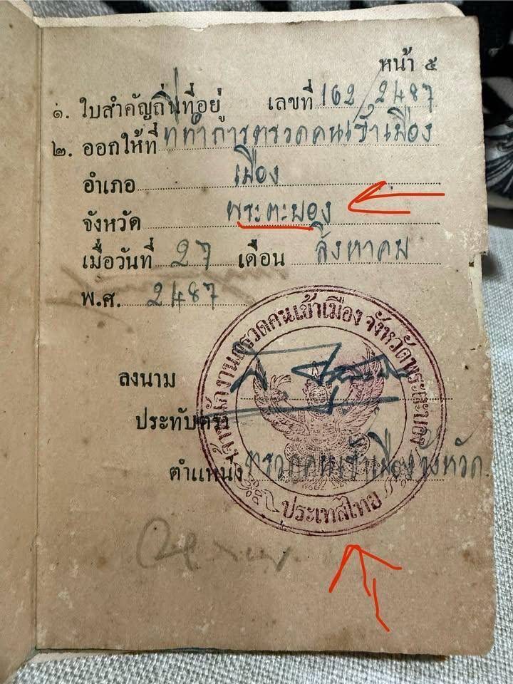 ตัวอย่างหลักฐานหนังสือเดินทางจังหวัดพระตะบอง ลงนามด้วยตราประทับประเทศไทย