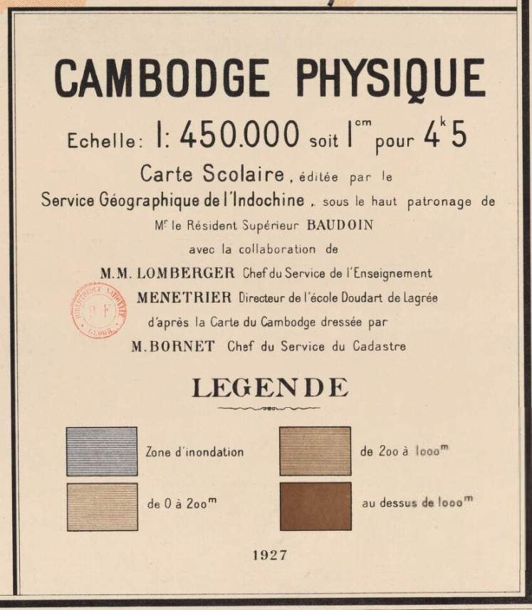 - แผนที่มาตราส่วน 1:200,000 (1 ซม. = 2 กิโลเมตร) ผลิตโดยฝรั่งเศสในยุคอาณานิคม และแนบมากับ สนธิสัญญาฝรั่งเศส‑สยามปี 1907 และ 1904