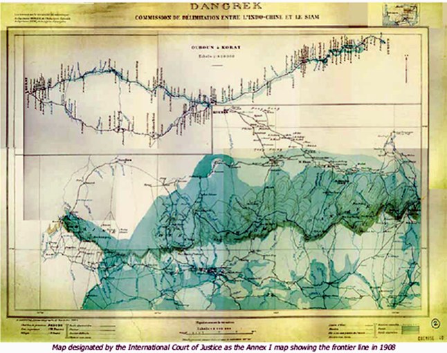 รากของข้อพิพาท มาจากการตีความสนธิสัญญาฝรั่งเศส‑สยามระหว่างปี 1904 และ 1907 ซึ่งใช้ watershed (แนวแบ่งน้ำ) และแผนที่ 1:200,000 เป็นหลัก ในปี 1962 ศาลรัฐธรรมนูญ ICJ มอบให้กัมพูชาครอบครองปราสาท Preah Vihear แต่ไม่ได้กำหนดแนวเขตชัดเจนตามแผนที่ 1:200,000