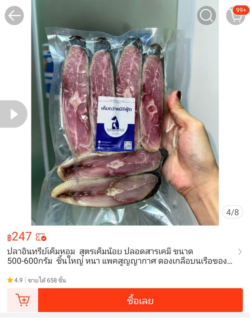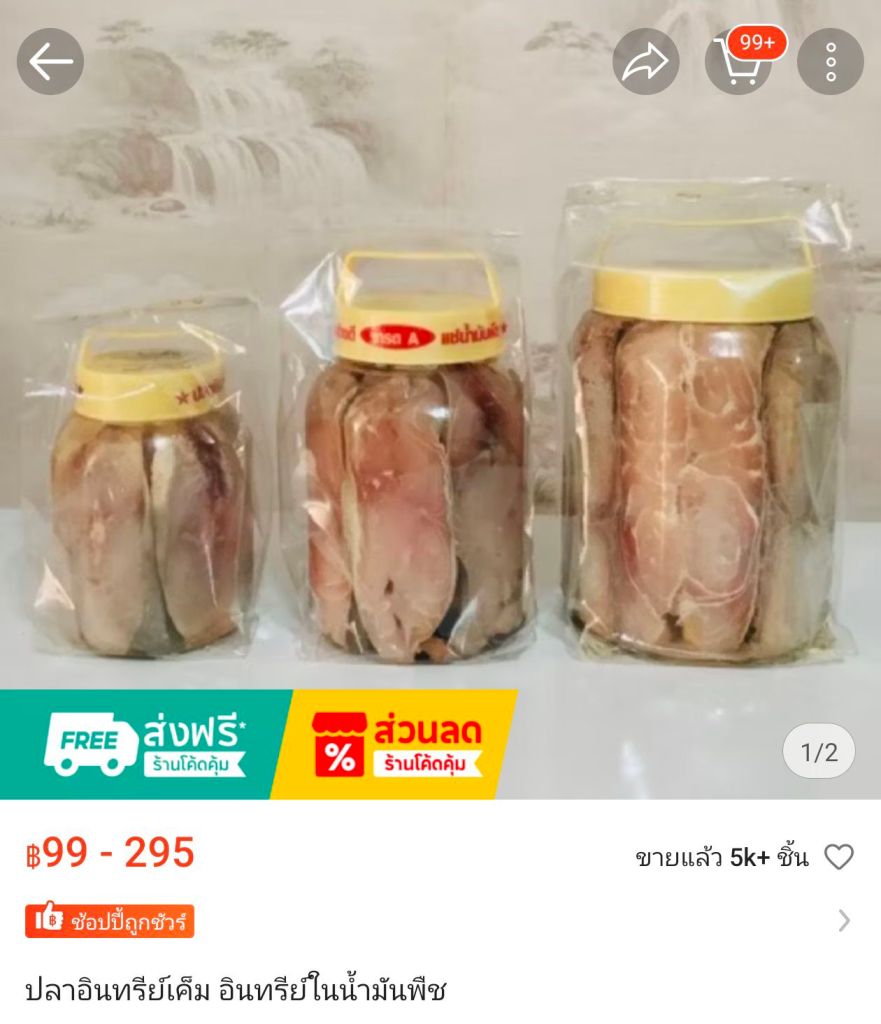 6. ปลาอินทรีย์เค็ม ใน น้ำมันพืช ราคา ฿99 – ฿295 สั่งซื้อที่นี่