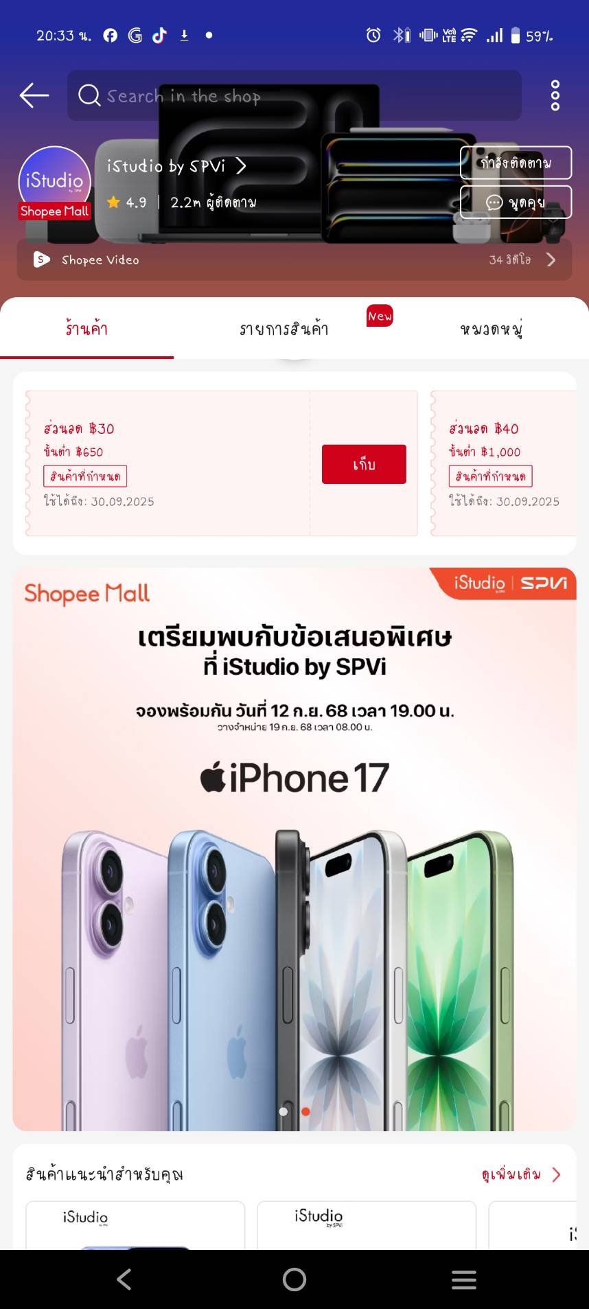 ตัวแทนอย่างเป็นทางการของ Apple อีกเจ้าหนึ่งที่มีจุดแข็งในเรื่องโปรโมชันผ่อนและบริการเสริม จองผ่านเว็บไซต์ iStudio by SPVi รวมไปถึงหน้าร้านออนไลน์ใน Shopee และ Lazada เพื่อรับส่วนลด 2,000 บาท ในวันเปิดจอง