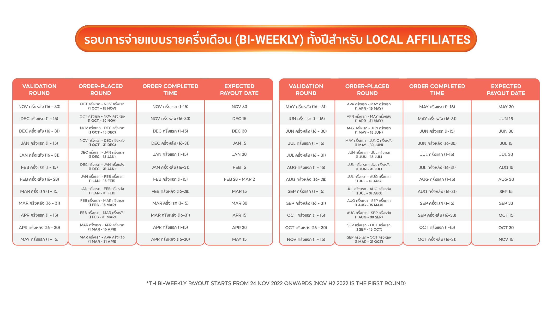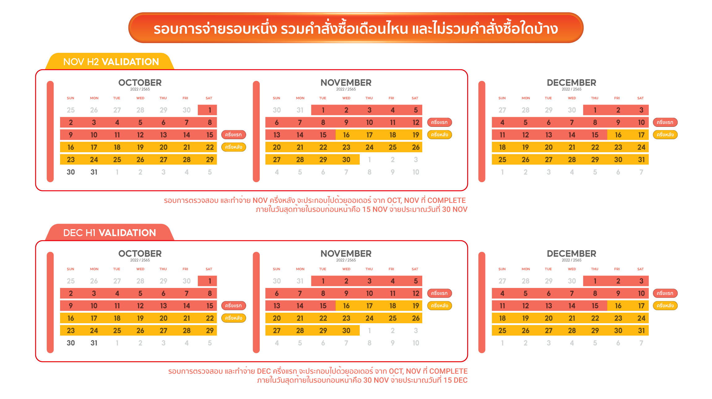 | ธันวาคม | 1 ธ.ค. / 15 ธ.ค. | 30 ธ.ค. |