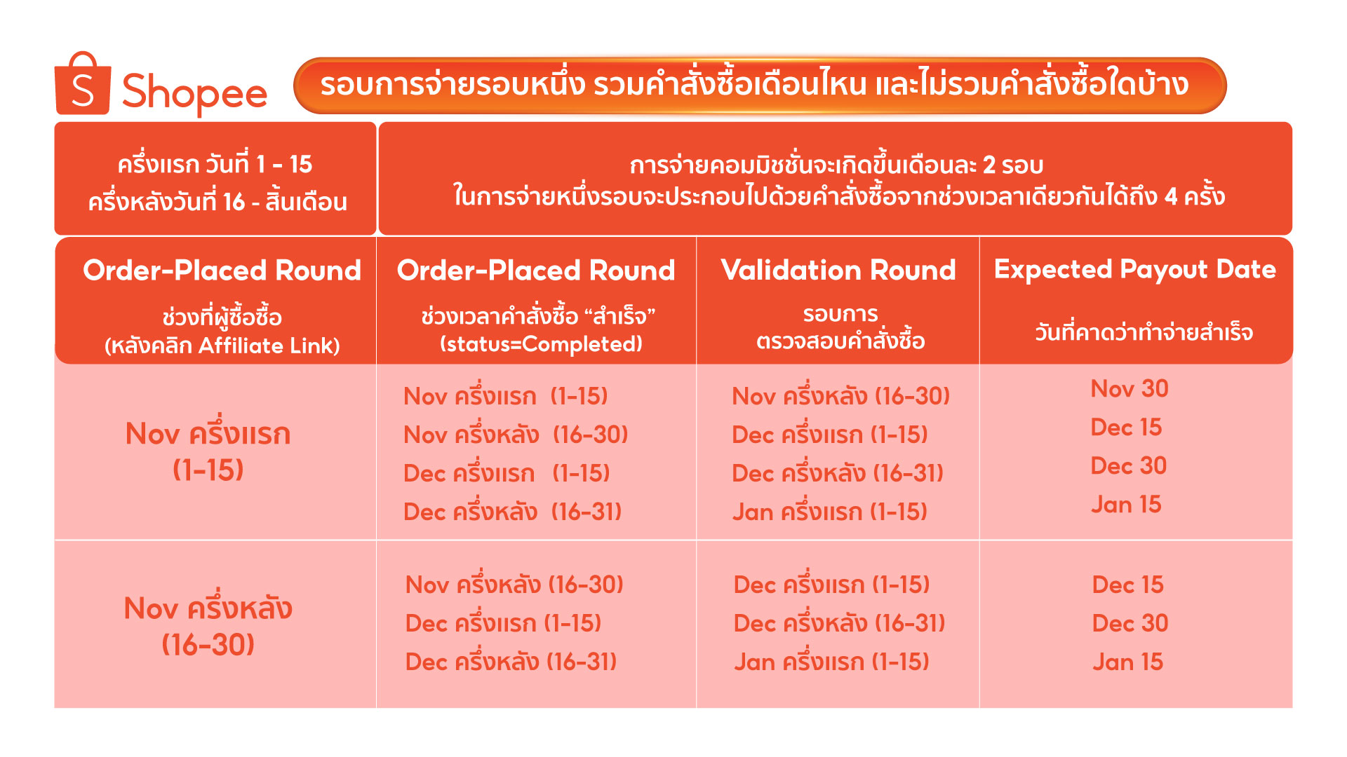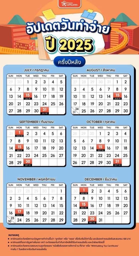 ตารางรอบจ่ายเงิน Shopee Affiliate 2025