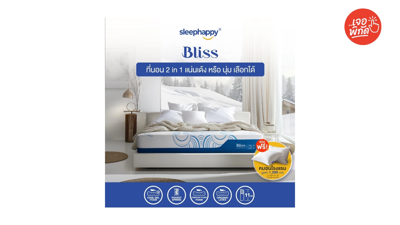 SleepHappy รุ่น Bliss Pocket Spring + Cool Gel Memory Foam + ยางพาราแท้ ลดปวดหลังได้ดีเยี่ยม ความหนา 10-12 นิ้ว รับส่วนลดสินค้าโปรโมชั่น SHOPEE | LAZADA | TIKTOK SHOP คลิกเลย