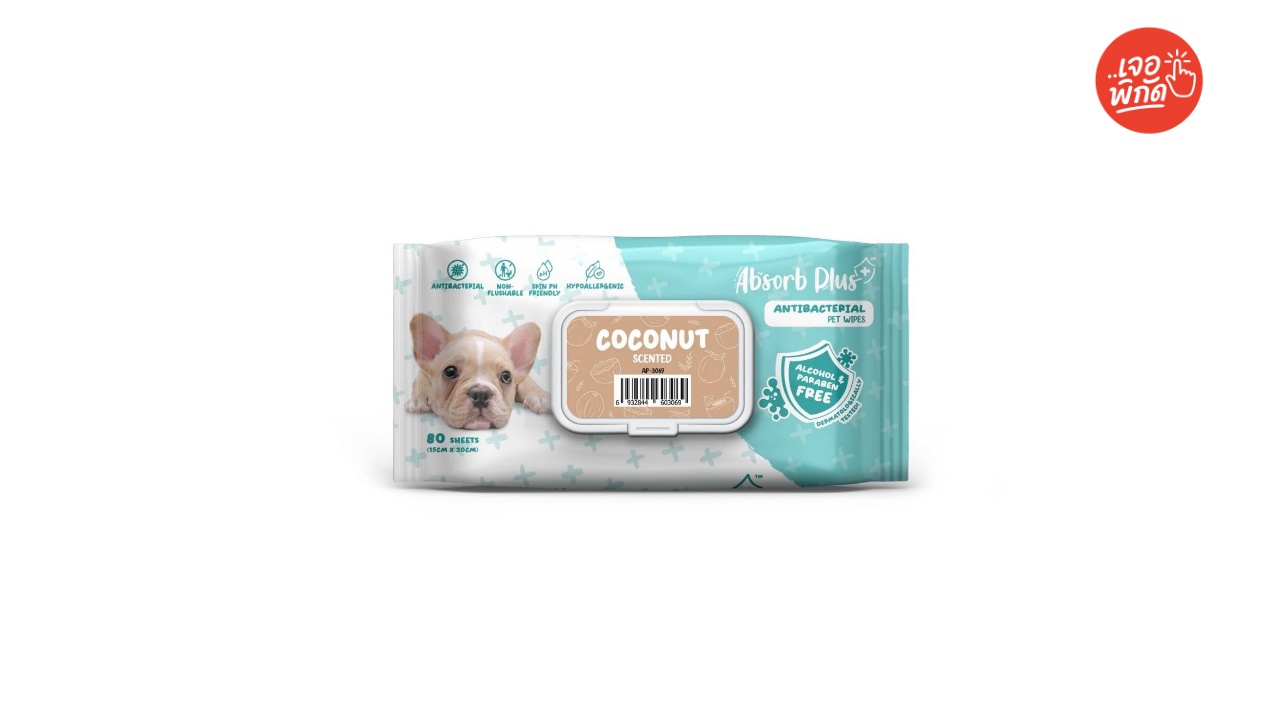 2. ทิชชู่เปียกสัตว์เลี้ยง ยี่ห้อ Absorb Plus Antibacterial Wipes