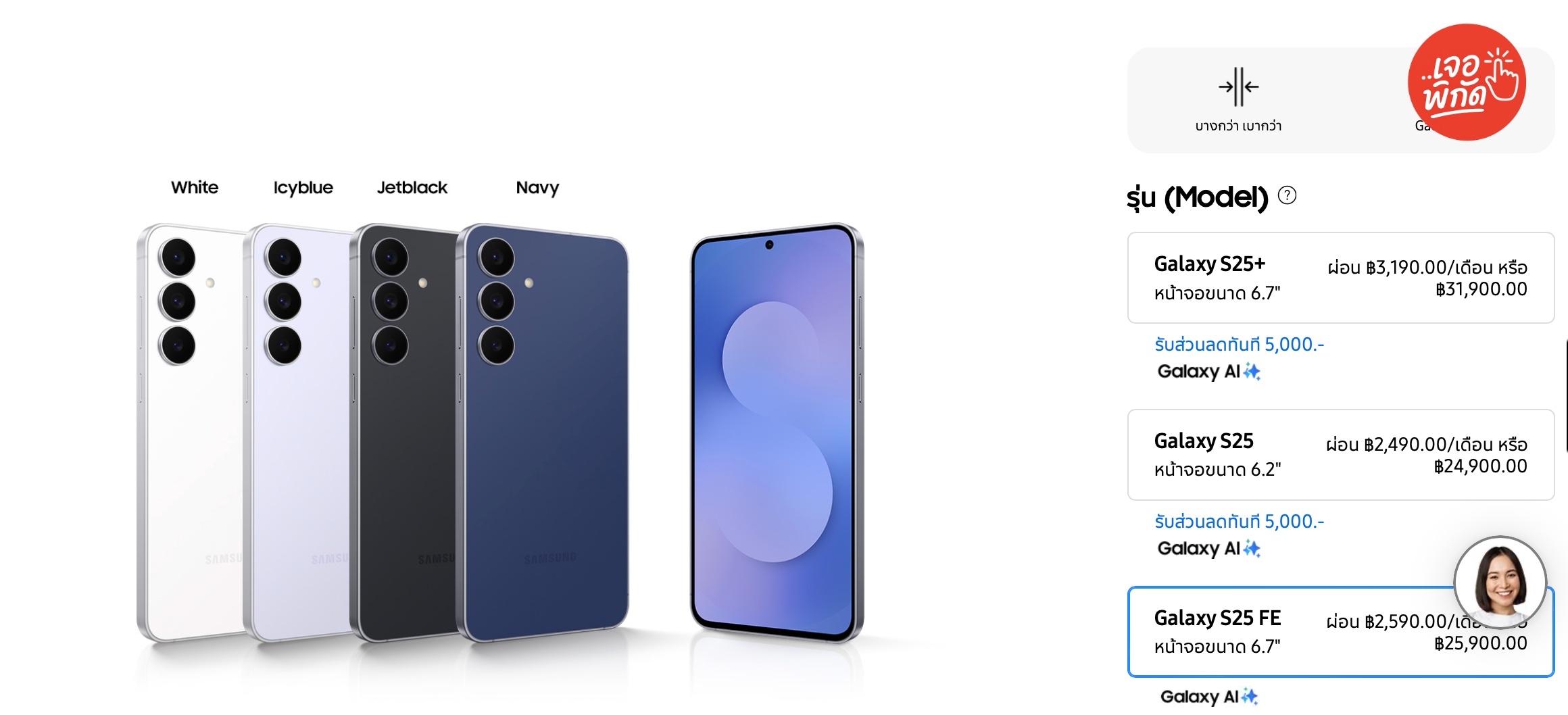 * Samsung Galaxy S25 (12GB+256GB): ราคาเริ่มต้น 29,900 บาท