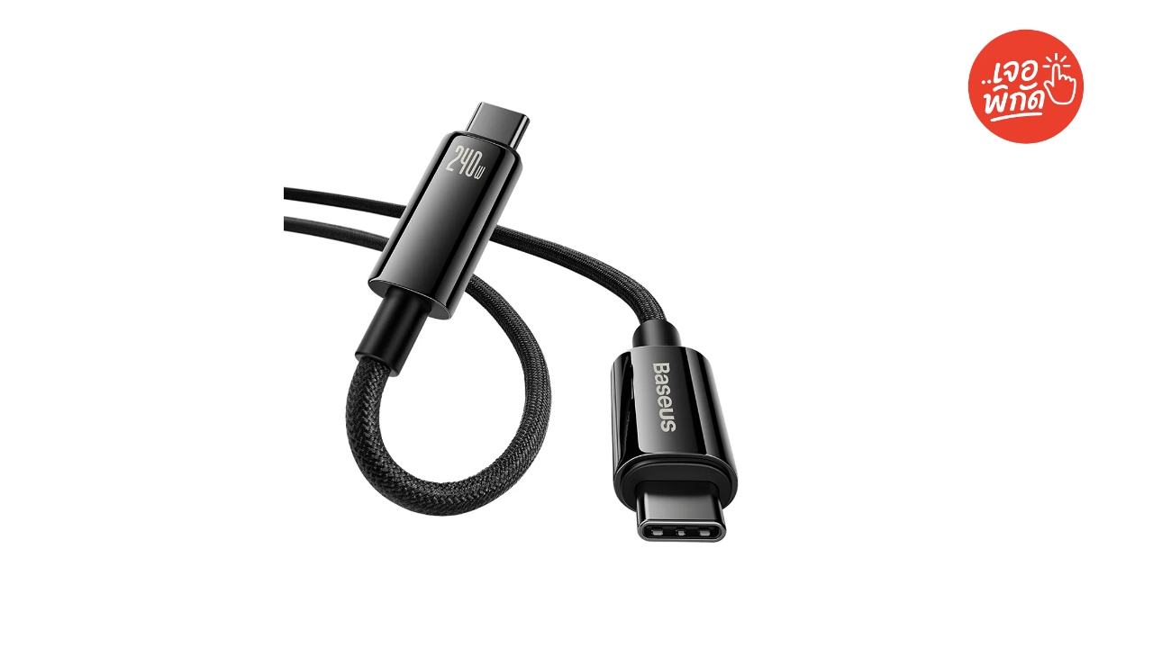 Baseus รุ่น 240W Type-C เน้นความทนทานและการนำกระแสไฟ 5A บางรุ่นมีจอ LED แสดงกำลังไฟ (Watt) แบบ Real-time