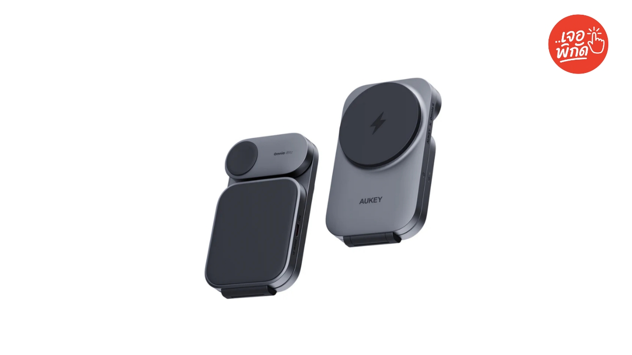 MagSafe ยี่ห้อ AUKEY แท่นชาร์จแบบ Power Bank รองรับ MagSafe มีขาตั้ง ใช้งานสะดวก รองรับชาร์จไร้สายสูงสุด 15W ราคา ฿800 – ฿1,200