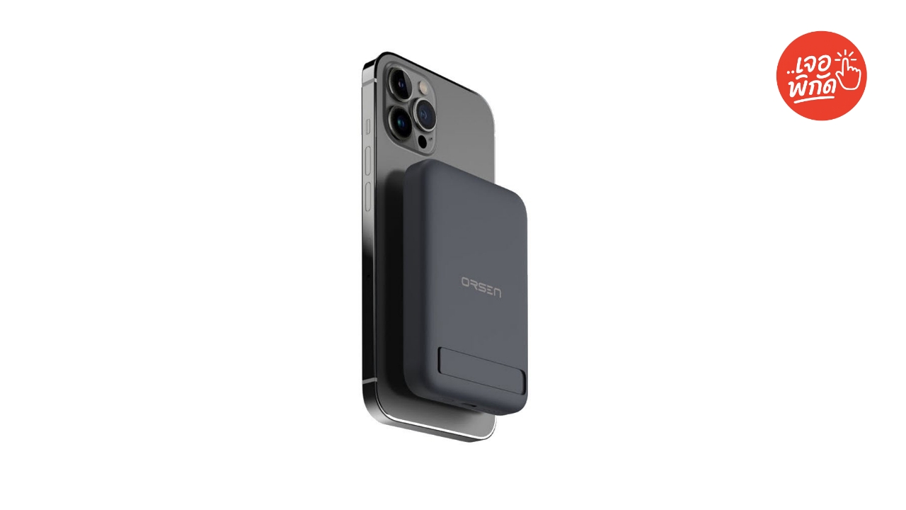 MagSafe ยี่ห้อ ELOOP รุ่น MagSafe Power Bank (EW Series) ราคาคุ้มค่ามาก, มีความจุให้เลือกหลากหลาย (4,200mAh – 20,000mAh), บางรุ่นมีขาตั้งและรองรับ PD 20W ราคา ฿789 – ฿1,199