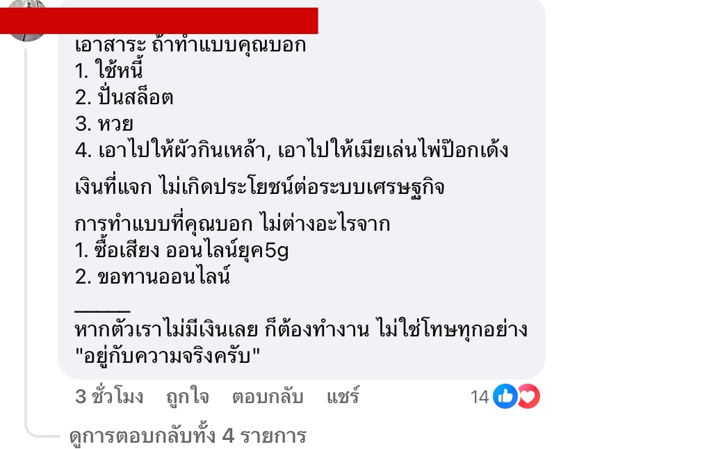 สุดท้ายนี้โครงการคนละครึ่ง 2568 จะหมดเขตในวันที่ 31 ตุลาคม 2568 แม้บางคนจะพยายามไปกดเป็นเงินสด ถ้าหากรู้ถึงความสำคัญของโครงการคนละครึ่งในแบบเศรษฐกิจมหภาคแล้วจะเข้าใจว่าโครงการนี้มีประโยชน์มากกว่าเอาเงินสดไปใช้ โดยไม่รู้เส้นทาง Flow เงินแจกจากรัฐบาล .. คอมเมนท์นี้เป็นตัวแทนหมู่บ้านที่โดนใจมากครับ..