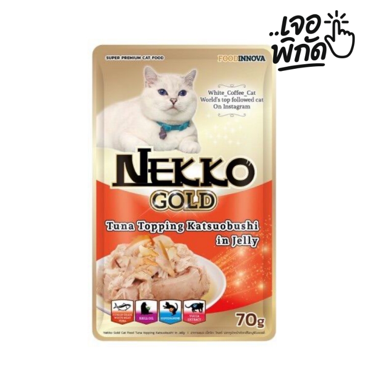 อาหารเปียกแมวยี่ห้อ Nekko Gold (เน็กโกะ โกลด์) แบบซอง ราคาซองละ 25 – 35 บาท อาหารเปียกแมวเกรดพรีเมียมในตลาดไทย เน้นเนื้อปลาทูน่าคุณภาพดี มีสูตรมูสสำหรับลูกแมว/สูงอายุ คลิกสั่งซื้อได้ที่ SHOPEE | LAZADA