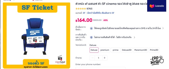 สรุปพิกัดโปรโมชั่นจองตั๋วหนัง SF ผ่าน LAZADA